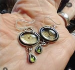 Sterling silver and brass earrings with peridot and dried hydrangea petals. Designed and created by Patti KlineGreen for Venture.